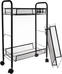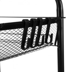 Cztery kółka ułatwiają przesuwanie, dwa z hamulcem zapewniają stabilne unieruchomienie. Boczne haczyki oferują dodatkowe miejsce na ściereczki, akcesoria i drobiazgi.