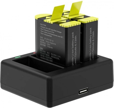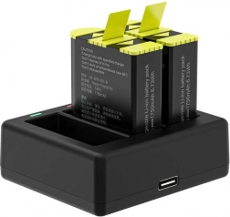 Z tą trzykanałową ładowarką Telesin Twoje ujęcia akcji będą zawsze pod kontrolą. Naładuje do 3 akumulatorów jednocześnie, po pełnym naładowaniu automatycznie przerywa pracę, a dzięki czytelnym diodom LED zawsze wiesz, kiedy proces się zakończył. Dwa dołączone akumulatory o pojemności 1750 mAh zapewniają do ok. 112 minut nagrania w 4K/30 FPS (w zależności od warunków i ustawień).