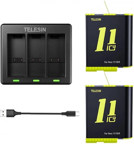 Telesin trzykanałowa ładowarka z 2 akumulatorami do GoPro HERO 9/10/11/12