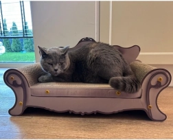 Elegancka kocia sofa z powierzchnią do drapania łączy wygodne miejsce do odpoczynku i trwały drapak w jednym. Wykonana z wielowarstwowej tektury falistej z boczkami z MDF w stylu vintage, oferuje stabilność, łatwy montaż i pomaga chronić meble przed pazurami.