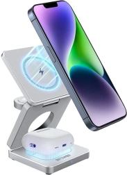 Bezprzewodowa ładowarka dla urządzeń AppleBezprzewodowa ładowarka BlitzWolf 3 w 1 to idealne rozwiązanie dla użytkowników Apple, którzy chcą jednocześnie ładować iPhone’a, Apple Watch i AirPods. Eliminuje to potrzebę używania kilku ładowarek i plątaniny kabli, dzięki czemu możesz cieszyć się wygodą i porządkiem na biurku. Umożliwia ładowanie poziome i pionowe.