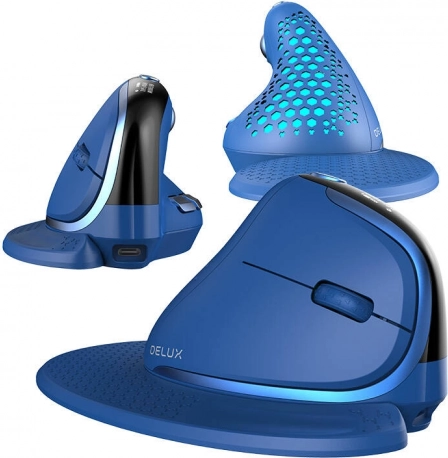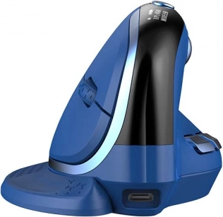 bezprzewodowa pionowa mysz DELUX M618XSD z OLED, BT + 2,4 GHz i RGB (niebieska)