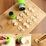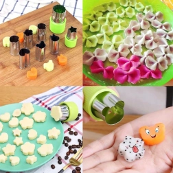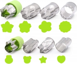 Zestaw ośmiu wielofunkcyjnych wykrawaczek umożliwia łatwe kształtowanie owoców i warzyw w różne kreatywne formy. Ergonomiczne plastikowe uchwyty chronią ręce, a ostre nierdzewne ostrza przyspieszają krojenie.