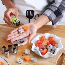 Ten praktyczny zestaw wykrawaczek jest idealny dla każdego entuzjasty twórczego gotowania lub pieczenia. Z jego pomocą łatwo stworzysz imponujące dekoracje z owoców i warzyw, które urozmaicą twój talerz.