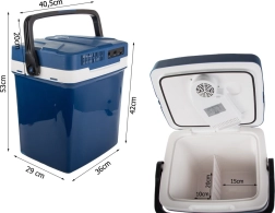 Dzięki zasilaniu DC 12 V (samochód) i AC 220–240 V (sieć) jest idealna do auta, kampera, biura i na działkę. Lekka, wytrzymała konstrukcja, praktyczny uchwyt oraz przemyślana przestrzeń wewnętrzna z przegródkami ułatwiają organizację zawartości i przenoszenie.