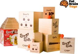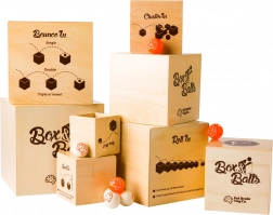 Ten oryginalny zestaw łączy prostotę drewna z sprytnie zaprojektowanymi wyzwaniami. Twórz własne tory, próbuj pozornie niemożliwych rzutów, trenuj wyczucie i zwinność. Największa skrzynka ma wymiary 14,5 × 14,5 cm, więc gra z łatwością zmieści się na stole i na podłodze – idealna do domowej zabawy, świetlic czy kącików gier.