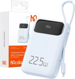 Kompaktowy powerbank Mcdodo o pojemności 10 000 mAh i szybkim ładowaniu 22,5 W niezawodnie doładuje telefon oraz akcesoria w podróży. Ładuje nawet 3 urządzenia jednocześnie, wspiera PD 3.0, QC 3.0 i 22,5 W SCP, ma czytelny wyświetlacz LCD, zintegrowaną pętlę/pasek do wygodnego noszenia i spełnia standardy bezpieczeństwa transportu lotniczego.