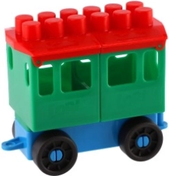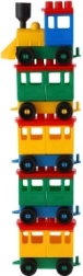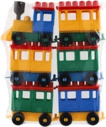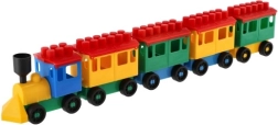 Stavebnice oferuje jasno zabarwioną lokomotywę i pięć wagoników. Te kolory przyciągają uwagę i wspierają dziecięcą kreatywność.
