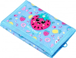 Portfel jest dostępny w 3 różnych wariantach: niebieski z truskawką, różowy z pączkiem oraz czerwony z króliczkiem. Kompaktowe wymiary są idealne do szkolnej torby, plecaczka i kieszeni.