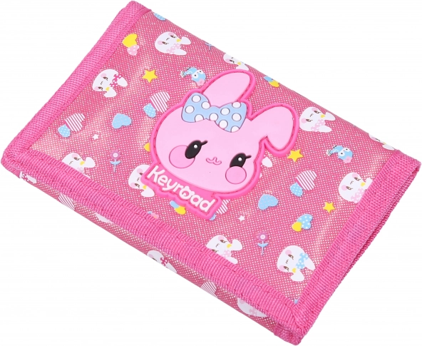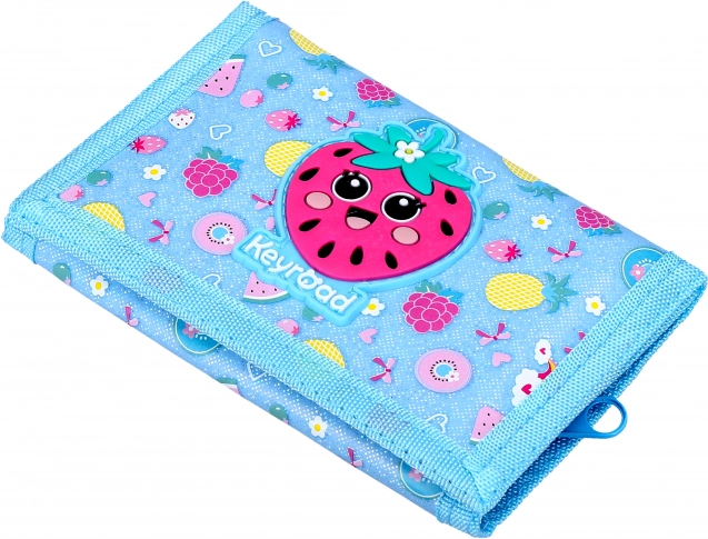 Stylowy dziewczęcy portfel Keyroad z wytrzymałej tkaniny zachwyca barwnymi motywami i praktycznym wykonaniem. Ma niezawodne zapięcie na rzep, kompaktowe wymiary dopasowane do dziecięcych dłoni i jest dostępny w 3 wesołych wzorach – truskawka, pączek i króliczek.