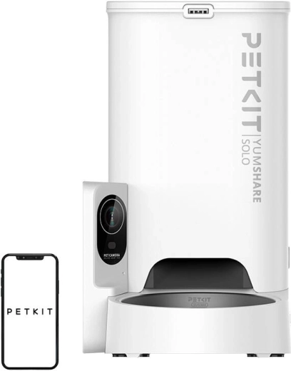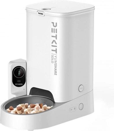 Podajnik karmy Petkit Yumshare Solo pozwala obserwować i komunikować się z pupilem dzięki wbudowanej kamerze i mikrofonowi. Z aplikacją PETKIT możesz planować karmienie na każdy dzień tygodnia, ustawiać porcje i kontrolować stan urządzenia.