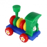kolorowy plastikowy pociąg dla dzieci z pierścieniami