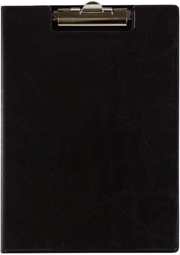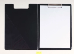 Zamykana podkładka do pisania z metalowym klipsem, wykonana z ekstra mocnej tektury z wewnętrzną przezroczystą kieszenią.