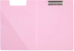 Ciesz się pisaniem z tą zamykaną podkładką do pisania w nowoczesnym pastelowym różu. Wyposażona w metalowy klips dla bezpiecznego przechowywania dokumentów i przezroczystą kieszeń dla łatwej organizacji.