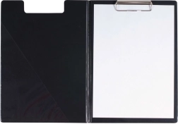 Elegancka i praktyczna podwójna teczka A5 wykonana z wyjątkowo wytrzymałego plastiku, idealna do organizacji dokumentów, z metalowym klipsem dla łatwego mocowania.
