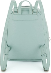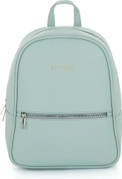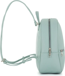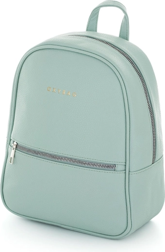 Stylowy damski plecak w kolorze miętowym, idealny do codziennego użytku w mieście i na wycieczki. Główna przestronna kieszeń zamykana na metalowy zamek, a mniejsza przednia kieszeń jest idealna na drobiazgi. Regulowane paski na ramiona zapewniają komfort noszenia.