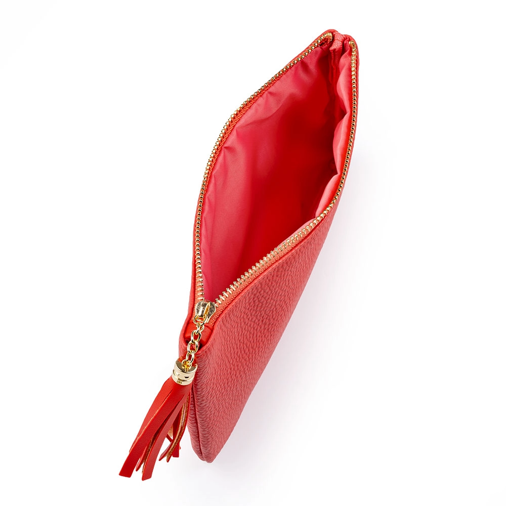 Kosmetyczka w eleganckim koralowym kolorze idealnie mieści się w torebce, a jej wymiary gwarantują, że pomieści wszystkie małe przedmioty, które chcesz mieć zawsze przy sobie. Ten stylowy dodatek posiada: