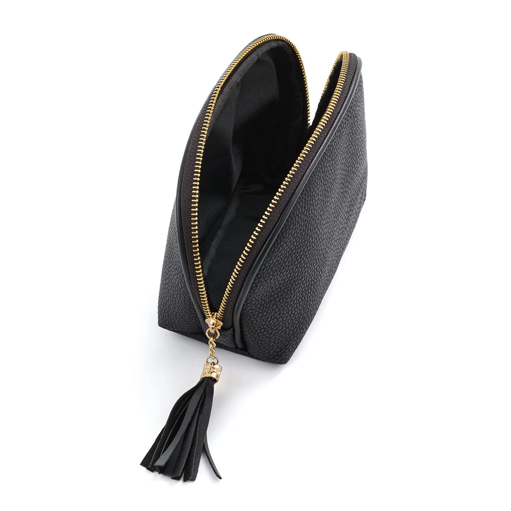 Kosmetyczka z czarnej skóry PLUS to idealne rozwiązanie do przechowywania Twoich mniejszych artykułów toaletowych i kosmetycznych w podróży.