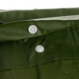 Peleryna jest wykonana z wysokiej jakości PVC, które zapewnia doskonałą odporność na rozdarcia. PVC jest również łatwe w utrzymaniu i odporne na przesiąkanie.