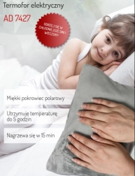 Miękki polarowy pokrowiec jest delikatny dla skóry i równomiernie rozprowadza ciepło. Na powierzchni pokrowca temperatura utrzymuje się w okolicach 50 °C, wewnątrz do 70 °C – komfort bez przegrzewania.