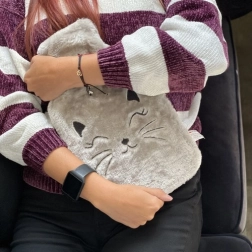 Termofor jest wyposażony w odczepiany pluszowy pokrowiec, który chroni skórę przed bezpośrednim kontaktem z gorącą butelką, zapewniając komfortowe i bezpieczne użytkowanie. Pluszowy wygląd kota nadaje produktowi zabawny i uroczy wygląd, co czyni go idealnym prezentem.