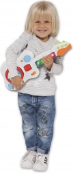 Efekty świetlne dodają zabawie energii przy każdym graniu. Zasilanie: 3 baterie R6 / AA 1,5 V, nie dołączone do zestawu. Gitara jest odpowiednia dla dzieci od 1,5 roku, wymiary: 17 x 40 x 5 cm.