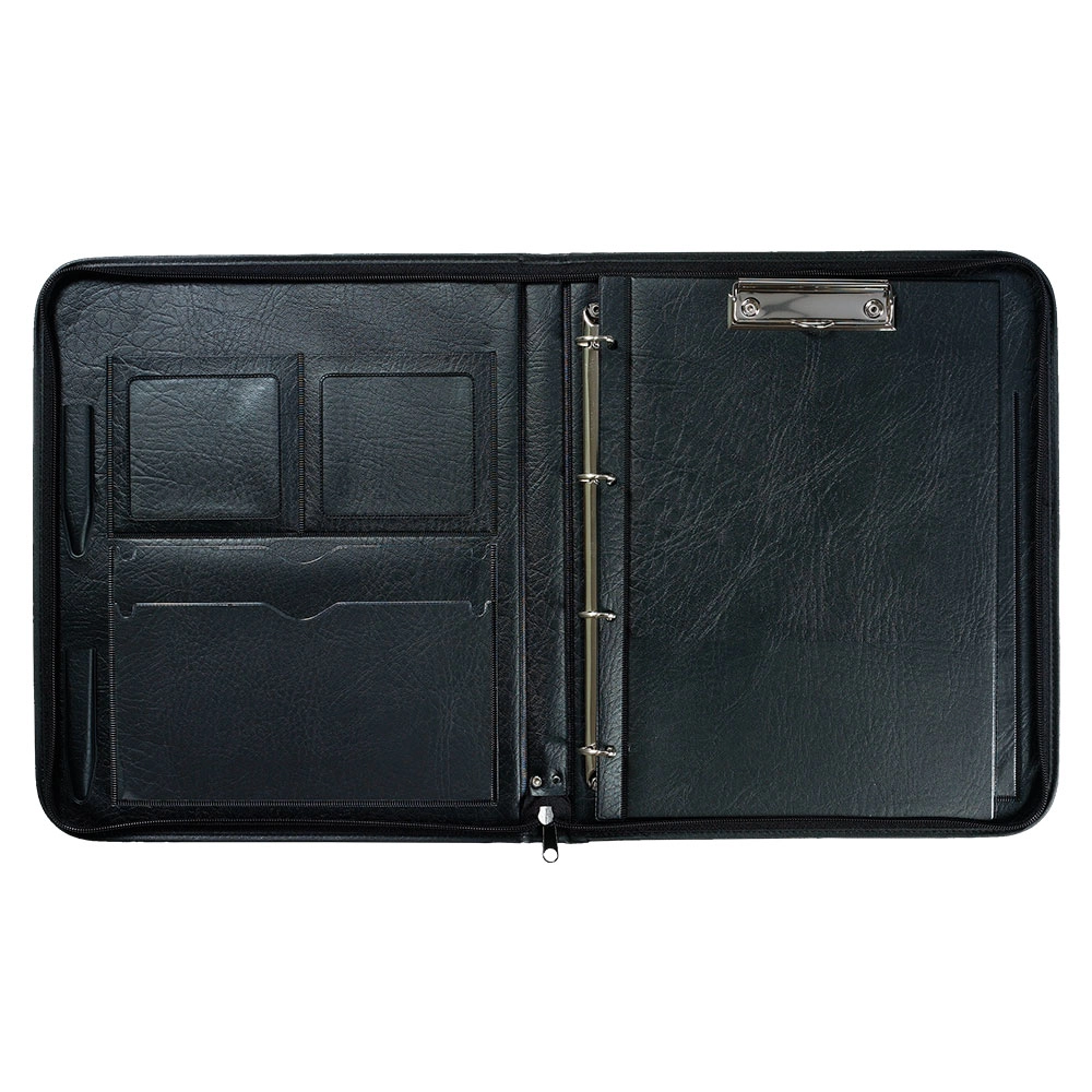 - Kieszenie na dokumenty i wizytówki, uchwyty na przybory do pisania