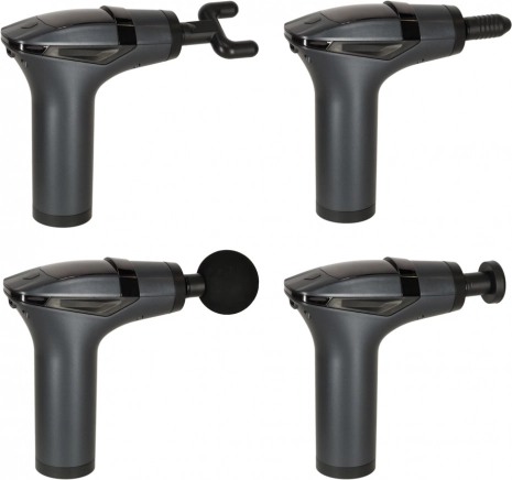 Cztery wymienne głowice umożliwiają celowany masaż na różnych częściach ciała, zapewniając elastyczność i komfort.