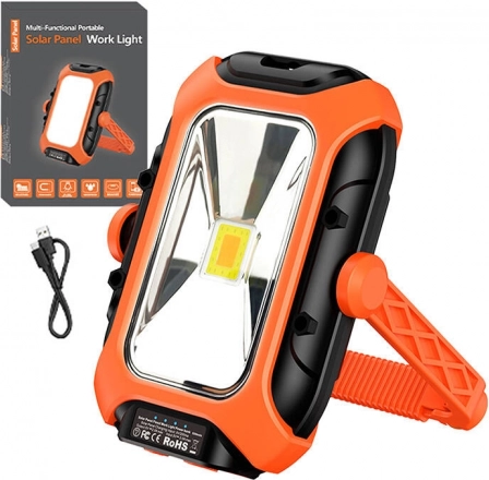 Panel solarny umożliwia szybkie ładowanie energią słoneczną, a port USB-C zapewnia wygodne ładowanie z komputera lub powerbanku.