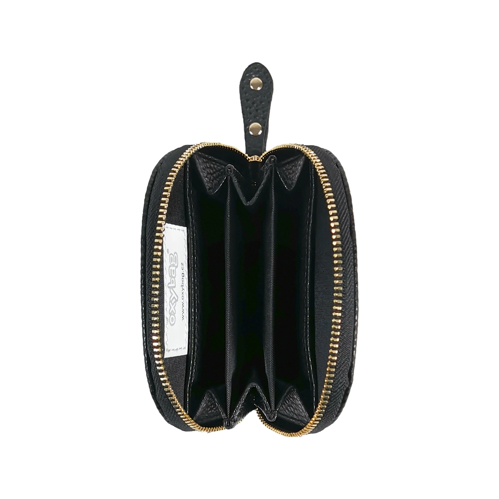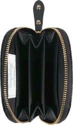 Elegancki i kompaktowy damski portfel z naturalnej skóry w czarnym kolorze na co dzień. Oferuje główną kieszeń na zamek z przejrzystym układem oraz 5 przegródek na monety i karty. Świetnie mieści się w mniejszej torebce i dzięki wytrzymałemu materiałowi posłuży przez długi czas.