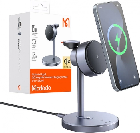 Obsługa najnowszego standardu Qi2 zapewnia stabilne, bezpieczne i szybkie ładowanie do 15 W dla telefonu, z optymalizowaną mocą także dla słuchawek i zegarka. Dołączony zasilacz 33 W pomaga osiągnąć najwyższe prędkości.