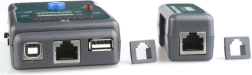 Urządzenie wspiera testowanie różnych kabli, w tym USB (A/A, A/B), 100Base-TX, 1000Base-TX, Token Ring oraz kabli modularnych RJ11/RJ12, dzięki czemu zakres zastosowań jest szeroki. W zestawie znajdują się dwa adaptery RJ11/RJ12 oraz zdalny terminator, co zwiększa elastyczność użytkowania. Zasilanie realizowane jest za pomocą baterii 9V, która nie jest dołączona do zestawu. Wyniki testów są łatwe do odczytania dzięki wskaźnikom LED.