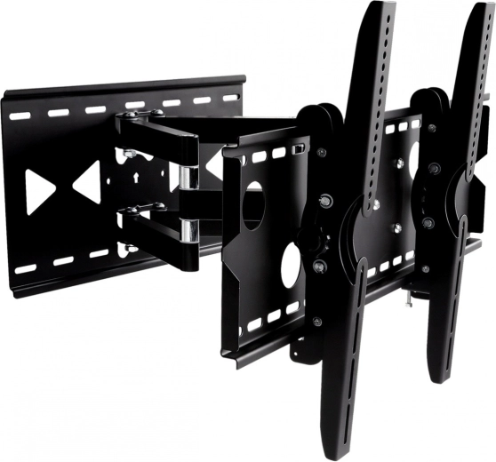 Uchwyt oferuje opatentowany system ustawienia nachylenia od -15° do +15° i obrót od -45° do +45°, co umożliwia dostosowanie kąta telewizora według twoich potrzeb. Jest wyposażony w specjalne otwory do przeprowadzenia kabli, co utrzymuje przestrzeń wokół telewizora uporządkowaną i przejrzystą.