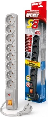 Przedłużacz Acar S8 z ochroną przeciwprzepięciową, 8 gniazd, kabel 3 m, idealny do domu i biura.