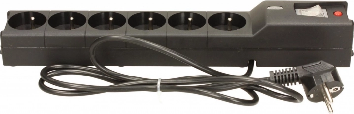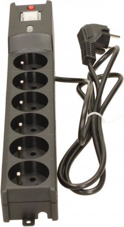 Listwa przeciwprzepięciowa LESTAR, 6 gniazd, 1,5 m, czarna