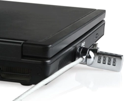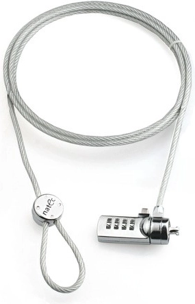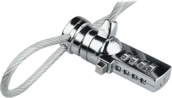 Elastyczna stalowa linka z powłoką z tworzywa jest odporna na przecięcie i delikatna dla powierzchni. Zamek jest kompatybilny z typowymi gniazdami zabezpieczającymi w laptopach i niektórych peryferiach. Prosty montaż zajmuje zaledwie kilka sekund.
