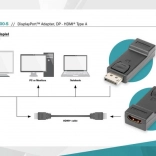 Adapter DisplayPort na HDMI umożliwia łatwe połączenie urządzeń z różnymi interfejsami wideo. Ten kompaktowy i przenośny adapter jest idealny do przesyłania wysokiej jakości obrazu i dźwięku.