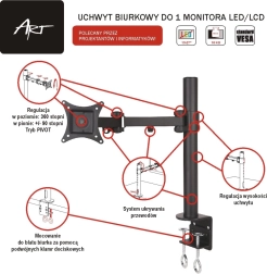 Uchwyt ART L-01 to idealny wybór dla ergonomicznego stanowiska pracy. Dzięki szerokim możliwościom regulacji z łatwością dostosujesz wysokość, kąt nachylenia i obrót ekranu, aby zmniejszyć zmęczenie oczu i karku oraz zwiększyć produktywność. Solidna konstrukcja zapewnia stabilność nawet przy częstych zmianach ustawień.