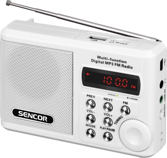 Ciesz się ulubioną muzyką i stacjami radiowymi w jednym urządzeniu. To przenośne radio FM łączy tradycyjny odbiór z możliwością odtwarzania cyfrowej muzyki z pamięci USB lub karty microSD. Czytelny wyświetlacz LED pokazuje aktualną częstotliwość, dzięki czemu strojenie stacji jest szybkie i precyzyjne.
