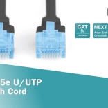 Niezawodny miedziany patch kabel do sieci LAN – U/UTP Cat 5e o długości 5 m w kolorze czarnym, zakończony z obu stron RJ45. Idealny do podłączenia komputera, telewizora czy konsoli do gier, a także do łączenia urządzeń aktywnych, takich jak switch lub router. Odlewane osłony z odciążeniem naciągu chronią złącza, bezpośrednie okablowanie 1:1 oraz zgodność ze standardami ISO/IEC 11801 Class D i DIN EN 50173 gwarantują stabilną transmisję.