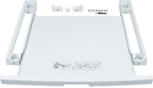 Ten element łączący ułatwia bezpieczne ustawienie suszarki na pralce, co jest idealnym rozwiązaniem oszczędzającym miejsce. W zestawie znajduje się wysuwana półka, która umożliwia wygodną obsługę prania i jednocześnie zapewnia miejsce do składania suchej odzieży.