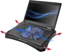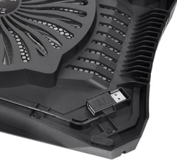 Thermaltake Massive V20 to niezawodna podstawka chłodząca zaprojektowana do codziennej pracy i grania. Duży wentylator 200 mm pod metalową siatką zapewnia równomierny przepływ powietrza na całej dolnej części laptopa, obniżając temperatury i wydłużając żywotność podzespołów.