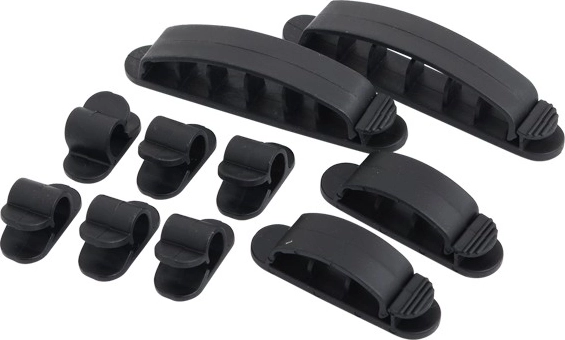Organizer kabli to idealne rozwiązanie do utrzymania kabli w porządku i bez bałaganu. Zapewnia elastyczne mocowanie z użyciem systemu klejącego, odpowiednie dla gładkich powierzchni.