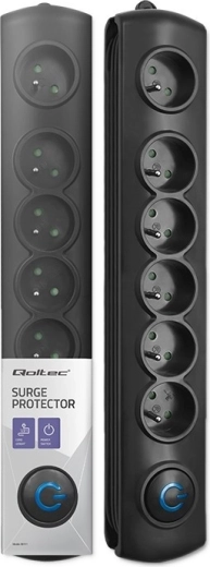 Bezpiecznie zasilaj wiele urządzeń z jednego miejsca dzięki listwie przeciwprzepięciowej z 6 gniazdami i kabelowi 1,8 m. Praktyczny podświetlany nożny przełącznik Quick Switch oszczędza czas i energię, zabezpieczenia przed dziećmi oraz niezapalny materiał PP zwiększają bezpieczeństwo. Elegancki czarny design, możliwość montażu do mebli i sprytne przechowywanie nadmiarowego kabla zapewniają porządek w domu i biurze.