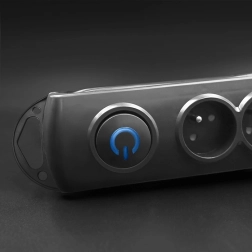 Podświetlany nożny wyłącznik umożliwia wygodne włączanie i wyłączanie zasilania bez schylania się. Wyraźna sygnalizacja zapewnia, że zawsze wiesz, kiedy listwa jest aktywna.