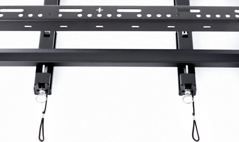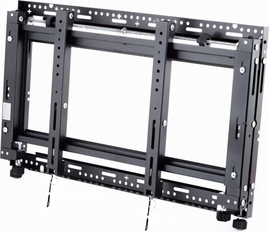 Solidny uchwyt typu pop‑out został zaprojektowany do profesjonalnych instalacji ścian wideo w przestrzeniach komercyjnych i informacyjnych. Umożliwia modułowe łączenie wielu uchwytów, precyzyjne wyrównanie poszczególnych paneli oraz bezpieczną konserwację dzięki wysuwowi z blokadą. Otwarta konstrukcja zapewnia pełny dostęp do prowadzenia kabli i punktów przyłączeniowych.