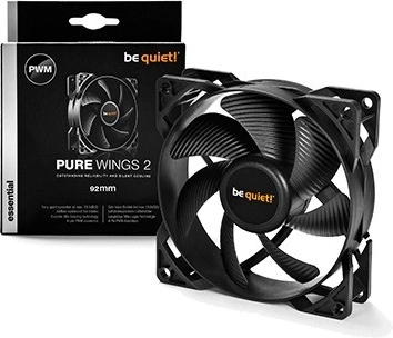 Cichy wentylator 92 mm Pure Wings 2 PWM z głośnością ok. 19,6 dB(A) i wysokim ciśnieniem statycznym. Idealny do chłodzenia wodnego i powietrznego PC.