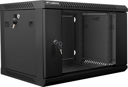 Nadstawna szafa serwerowa 19'' 6U 600x450 mm, czarna ze szklanymi drzwiami. Świetne rozwiązanie do bezpiecznego przechowywania Twojego sprzętu sieciowego.