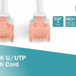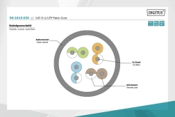 Kable DIGITUS są produkowane i testowane zgodnie ze standardami ISO/IEC 11801 oraz DIN EN 50173 CAT 6, co gwarantuje znakomitą wydajność w okablowaniu DIGITUS CAT 6. Kable zostały przetestowane przy częstotliwości do 250 MHz, w tym pod kątem parametrów takich jak przesłuch (NEXT). Każdy kabel jest wyposażony w osłonę zalewanego kapturka z odciążeniem naprężeń. Kapturek ma także ochronę zatrzasku, która zapobiega zahaczaniu kabli i łamaniu zatrzasku. Łatwą identyfikację kategorii 6 umożliwia czerwone zabarwienie złączy.