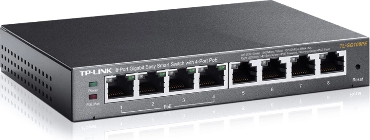 TP-Link 8-Port Gigabit Easy Smart Switch TL-SG108PE jest zoptymalizowany dla małych firm, które potrzebują podstawowych funkcji zarządzania siecią lokalną. To solidne metalowe urządzenie oferuje osiem gigabitowych portów RJ45, z których cztery obsługują PoE. Obsługa jest prosta dzięki funkcji Plug-and-play.